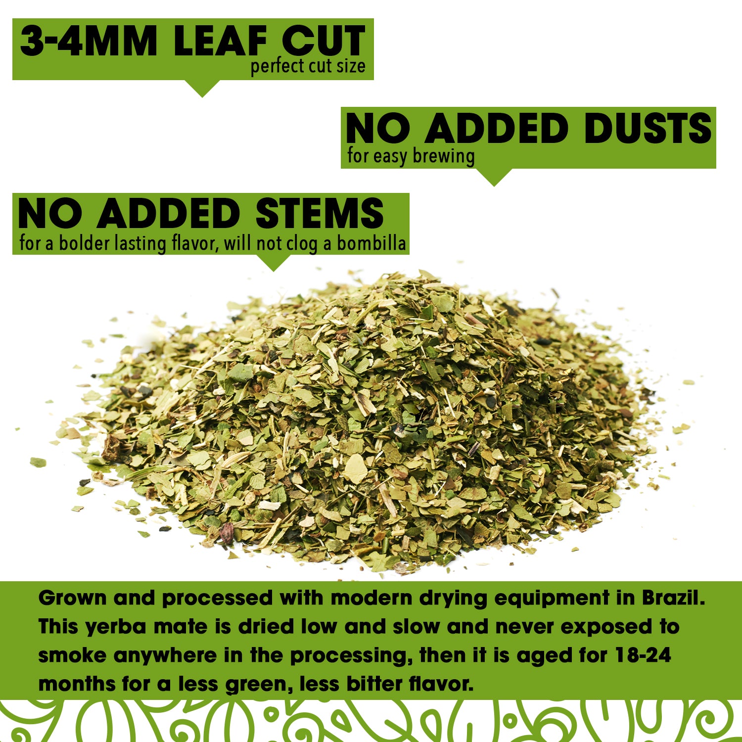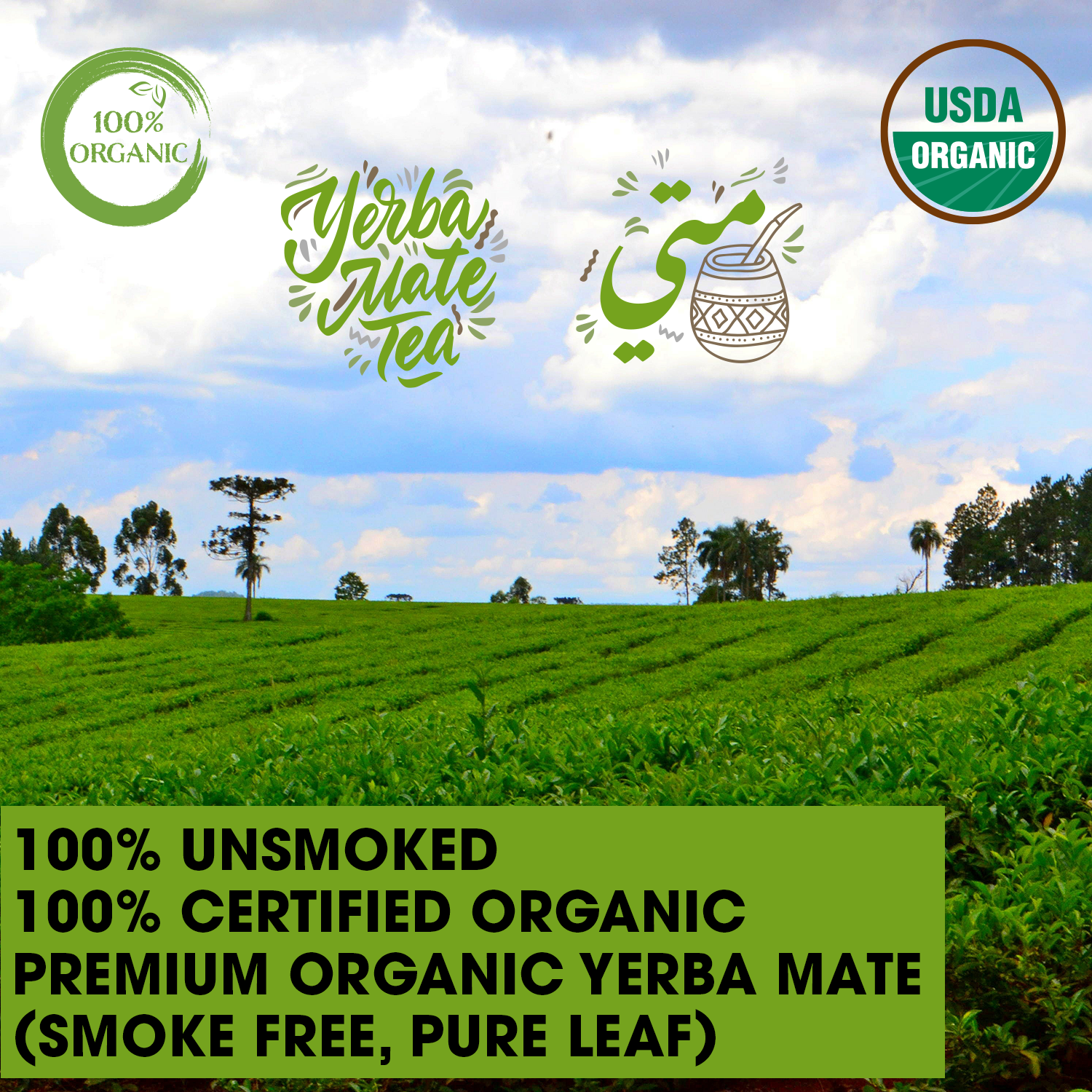 Yerba Mate is the world's most popular and healthiest herbal drink. It has 40% more antioxidants than any other tea. But traditional Yerba Mate is smoked before drying and processing, exposing it to carcinogenic compounds. That's why we created YerBalance Premium Unsmoked 100% Organic Pure Leaf Yerba Mate that will not clog a bombilla. Grown and processed with modern machinery in Brazil, this yerba mate is dried low and slow and never exposed to smoke anywhere in the processing. Then, it is aged for 18-24 months to create a less green, less bitter flavor that is simply perfect.