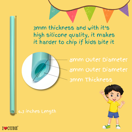 Short Silicone Straws for Kids with Cleaning Brush | BPA-Free, Food-Grade, Thick & Reusable Soft Straws for Kids Tumblers